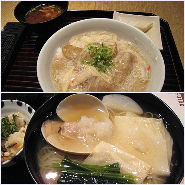 (上圖) 蟹肉芡丼(かにあんどん)1600日元, (下圖) 蛤蠣麵線(はまくりめん)1500日元,