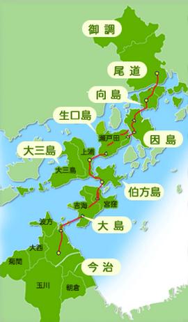 整個海道( 由 今治 -> 大島 -> 伯方島 -> 大三島 ... -> 尾道,