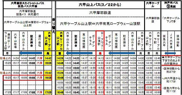 時刻表參考: http://www.rokkosan.com/cable/bus_maya/timetablemaya/