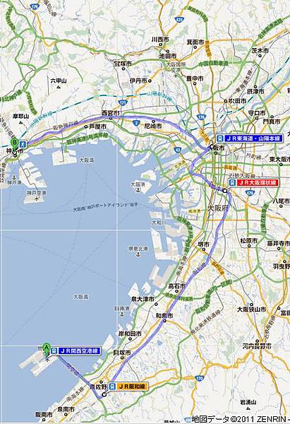 為什麼呢? 因為神戶到關西空港的時間 ~= 京都到關西空港的時間 ~= 京都到神戶的時間
